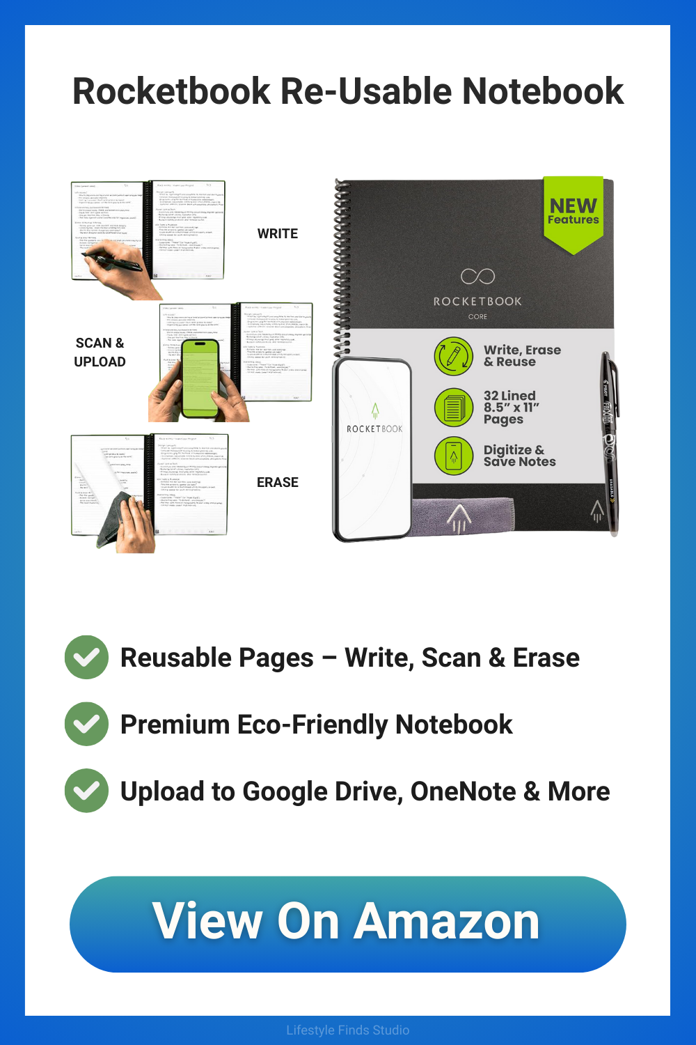 Rocketbook Core Reusable Notebook - Smart Digital Notebook with App, Erasable Pages & Cloud Sync